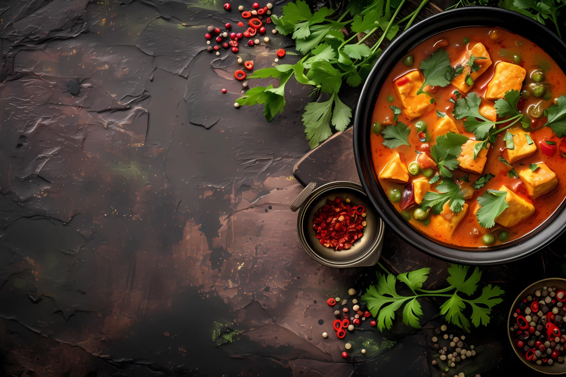- Bœuf massaman thaïlandais, mijoté dans un mélange d’épices et de lait de coco.